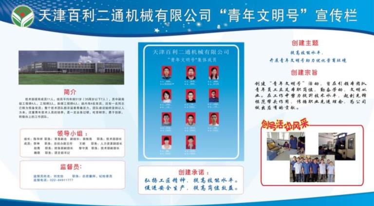 創建“青年文明號”活動,旨在引領本團隊青年員工立足本職崗位,勤奮勞動,文明從業。在工作中努力提升技術水平,起到先鋒模范帶頭作用,傳播職業先進理念,為公司做出應有的貢獻。