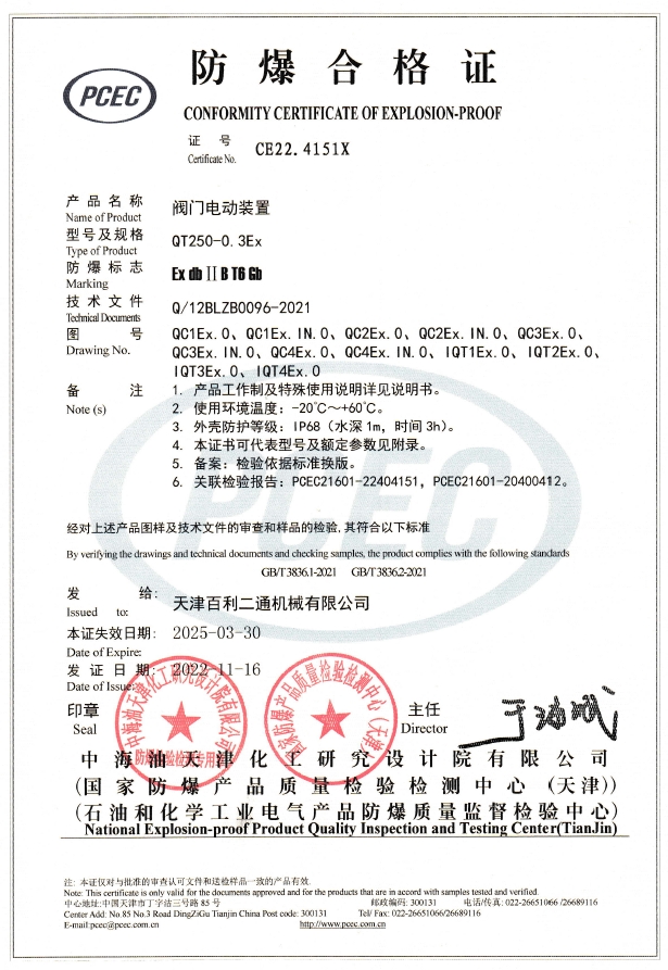 QT1~QT4型部分回轉閥門電動裝置是我公司最新研制的換代型產品。適用于控制蝶閥、球閥、旋塞閥等做90°回轉的閥門。該產品替代同規格的QB系列產品,體積小、重量輕、具有高效率、高可靠性、高防護性能、低噪音等特點??涩F場操作,也可遠距離控制。可廣泛用于石油、化工、發電廠、水處理、造紙等各行業。該產品的防護等級為IP68,隔爆型產品(型號中有Ex)的隔爆等級為ExdbⅡBT6Gb。