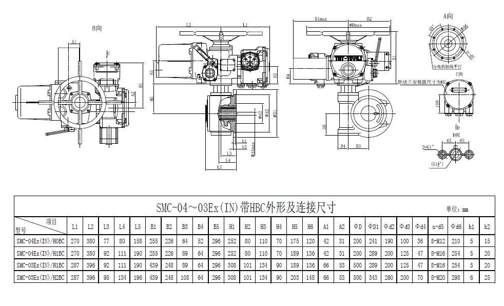 SMC/HBC系列電動裝置是SMC系列多回轉電動裝置與HBC蝸輪減速器的組合型式,它適合球閥、蝶閥等部分回轉閥門的驅動控制。SMC/HBC電動裝置具有以下特點:結構設計堅固可靠,產品規格齊全,驅動轉矩范圍大且動力輸出穩定, 具有良好的自鎖性能。 HBC輸出軸結構獨特,裝有與閥桿連接的漸開線花鍵接頭,產品的安裝調試方便。