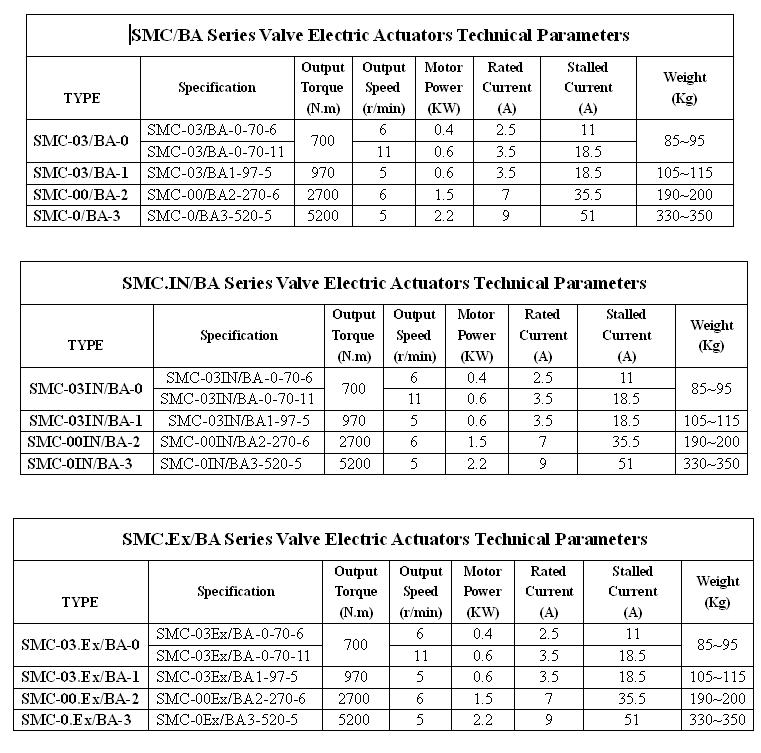 SMC/BA series, the combination of SMC series and BA cone gear reducer, are small and medium size multi-turn valve electric actuators. They are used to drive multi-turn actuators such as gate valve and stop valve. Through the combination of SMC series and BA cone gear reducer, customers can get bigger output torque. On the allowable condition of output speed, this series can improve actuators' generality so that can be used and maintained easily.