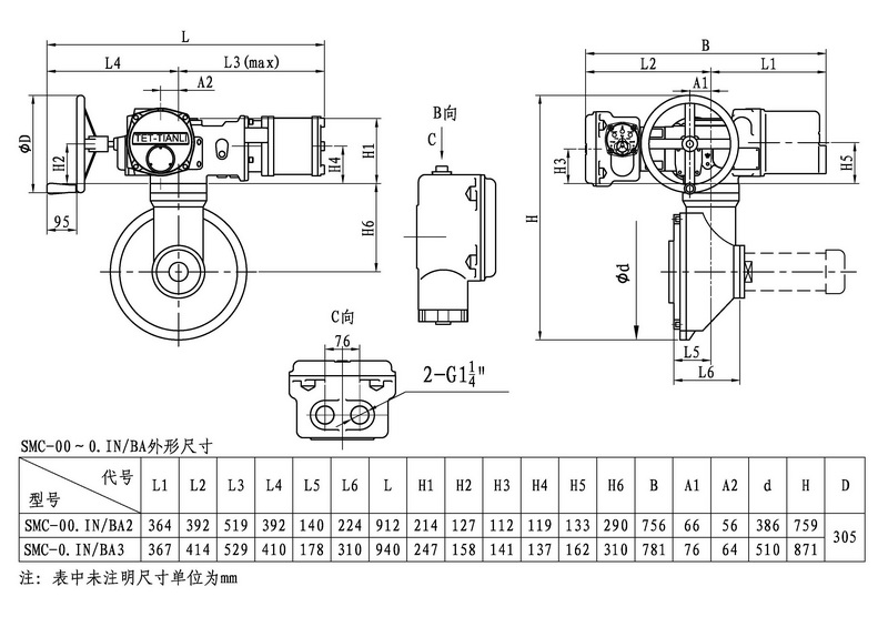 SMC/BA系列電動裝置是SMC系列中小轉矩多回轉電動裝置與BA圓錐齒輪減速器的一種組合型式,它適合閘閥、截止閥等多回轉閥門的驅動控制。SMC/BA電動裝置具有以下特點:以較小轉矩規格的SMC電動裝置與BA減速器組合可獲得更大的輸出轉矩。在輸出轉速允許的條件下,選用該產品能夠提高所選電動裝置規格的通用性,便于產品的使用、維護。