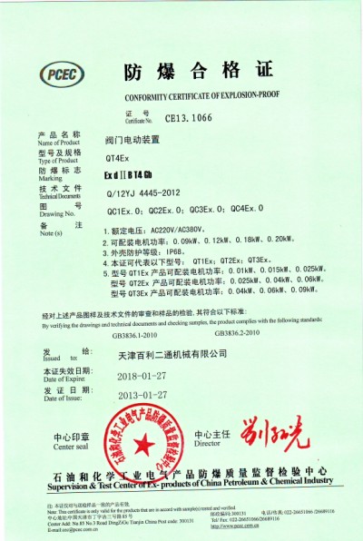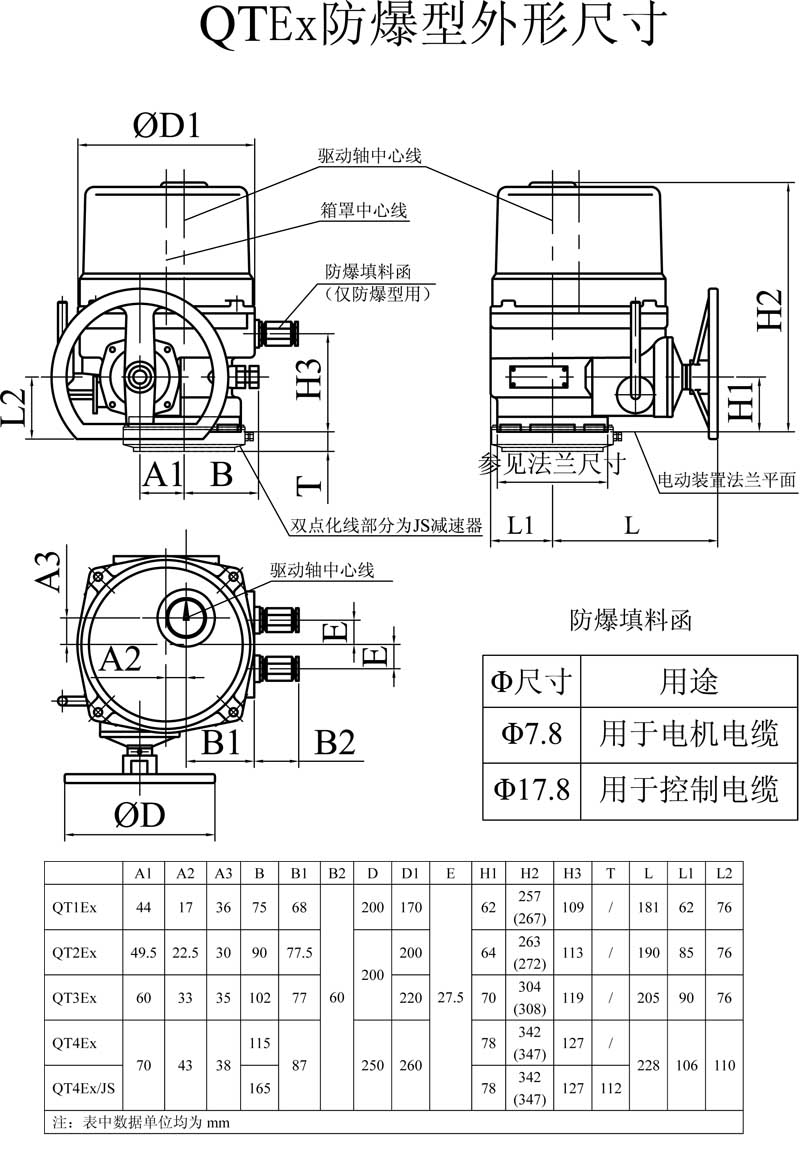 QT1~QT4型部分回轉閥門電動裝置是我公司最新研制的換代型產品。適用于控制蝶閥、球閥、旋塞閥等做90°回轉的閥門。該產品替代同規格的QB系列產品,體積小、重量輕、具有高效率、高可靠性、高防護性能、低噪音等特點??涩F場操作,也可遠距離控制。可廣泛用于石油、化工、發電廠、水處理、造紙等各行業。該產品的防護等級為IP67,隔爆型產品(型號中有Ex)的隔爆等級為dⅡBT4。