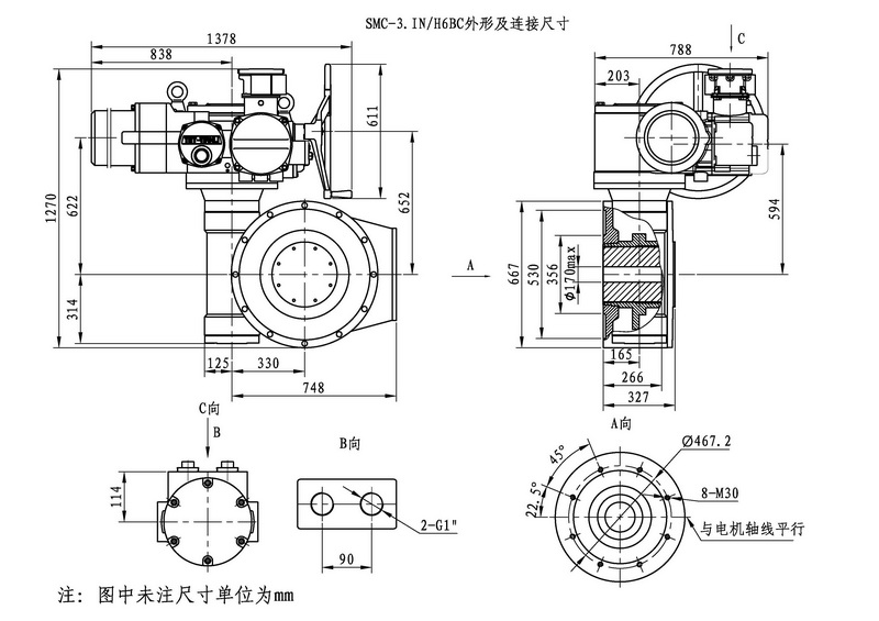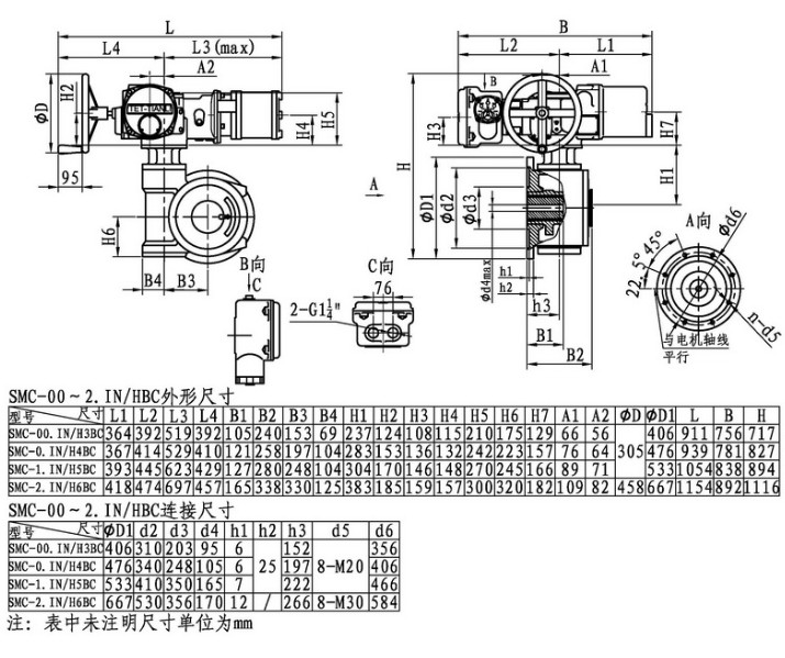 SMC/HBC系列電動裝置是SMC系列多回轉電動裝置與HBC蝸輪減速器的組合型式,它適合球閥、蝶閥等部分回轉閥門的驅動控制。SMC/HBC電動裝置具有以下特點:結構設計堅固可靠,產品規格齊全,驅動轉矩范圍大且動力輸出穩定, 具有良好的自鎖性能。 HBC輸出軸結構獨特,裝有與閥桿連接的漸開線花鍵接頭,產品的安裝調試方便。