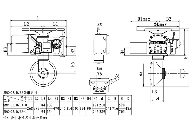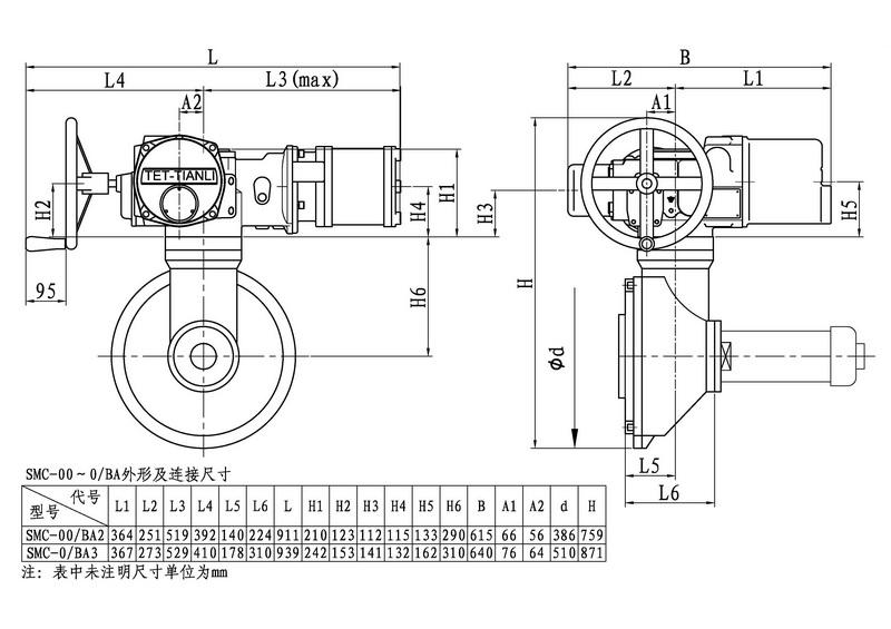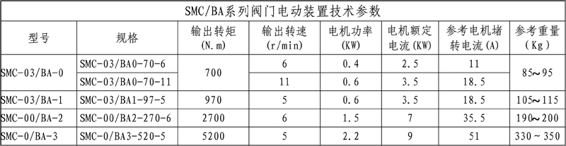 SMC/BA系列電動裝置是SMC系列中小轉矩多回轉電動裝置與BA圓錐齒輪減速器的一種組合型式,它適合閘閥、截止閥等多回轉閥門的驅動控制。SMC/BA電動裝置具有以下特點:以較小轉矩規格的SMC電動裝置與BA減速器組合可獲得更大的輸出轉矩。在輸出轉速允許的條件下,選用該產品能夠提高所選電動裝置規格的通用性,便于產品的使用、維護。